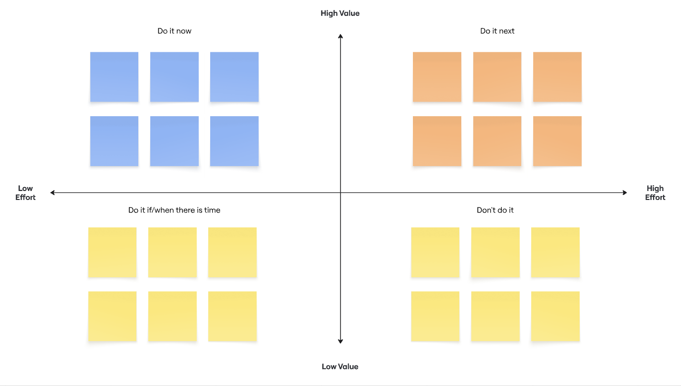 It Surfaces Misalignments Safely: The 2x2 matrix acts as a neutral, objective third party. A debate about whether a sticky note should be higher or lower is far less confrontational than directly telling a fellow executive their pet project isn't a priority. It depersonalizes the conflict and focuses it on the business logic.